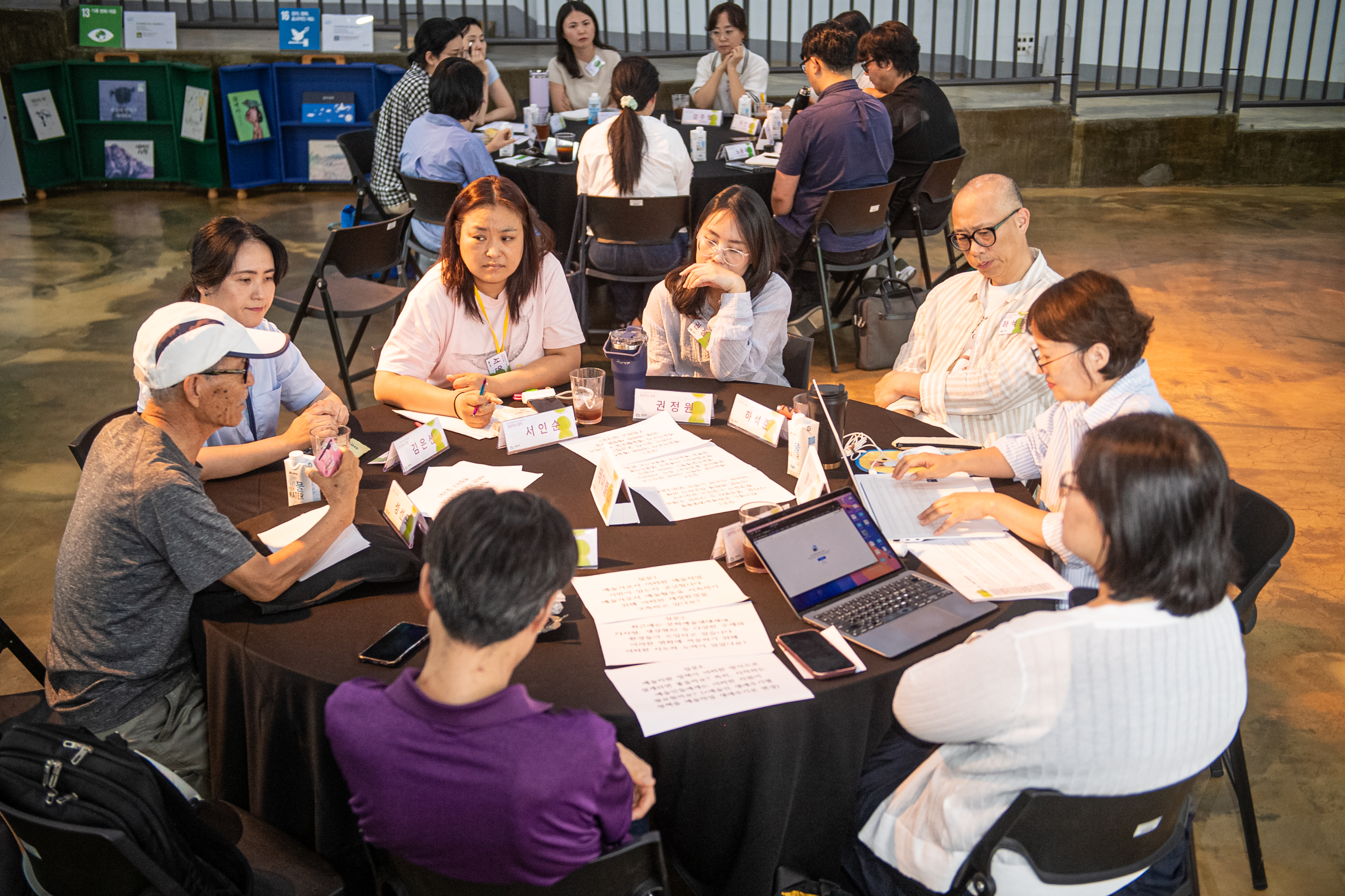 ‘올해 여름이 당신이 경험하는 가장 시원한 여름’이라는 피터 칼무스(Peter Kalmus)의 말처럼 기후는 지구에 사는 우리의 삶을 변화시키고, 경기도예술지원정책은 예술인의 현재와 미래를 변화시킨다. 비단 예술인 뿐일까? 예술지원정책이 일으키는 나비효과는 예술인의 날개짓을 지나 경기도민의 문화적 삶에 도달한다. "예술지원은 나에게는 창작의 지속 가능성을, 우리 사회에는 깊이 있는 질문과 다양한 시선의 공존을 가능하게 하는 ‘공공의 투자’라 생각합니다" 경기도(경기문화재단)의 예술지원정책은 지금 어떤 모습일까? 앞으로는 어떤 모습이어야 할까? 이 질문에 대한 서로의 답을 나누기 위해 경기도 거주 예술인과 기초문화재단 실무자들이 모였다. 하필 한반도가 아열대 기후에 들어왔음이 확실해진 폭우가 내리는 날이었다. 질문하는 원탁, 예술 현장의 목소리 <1> 창작과 생존의 줄타기 |